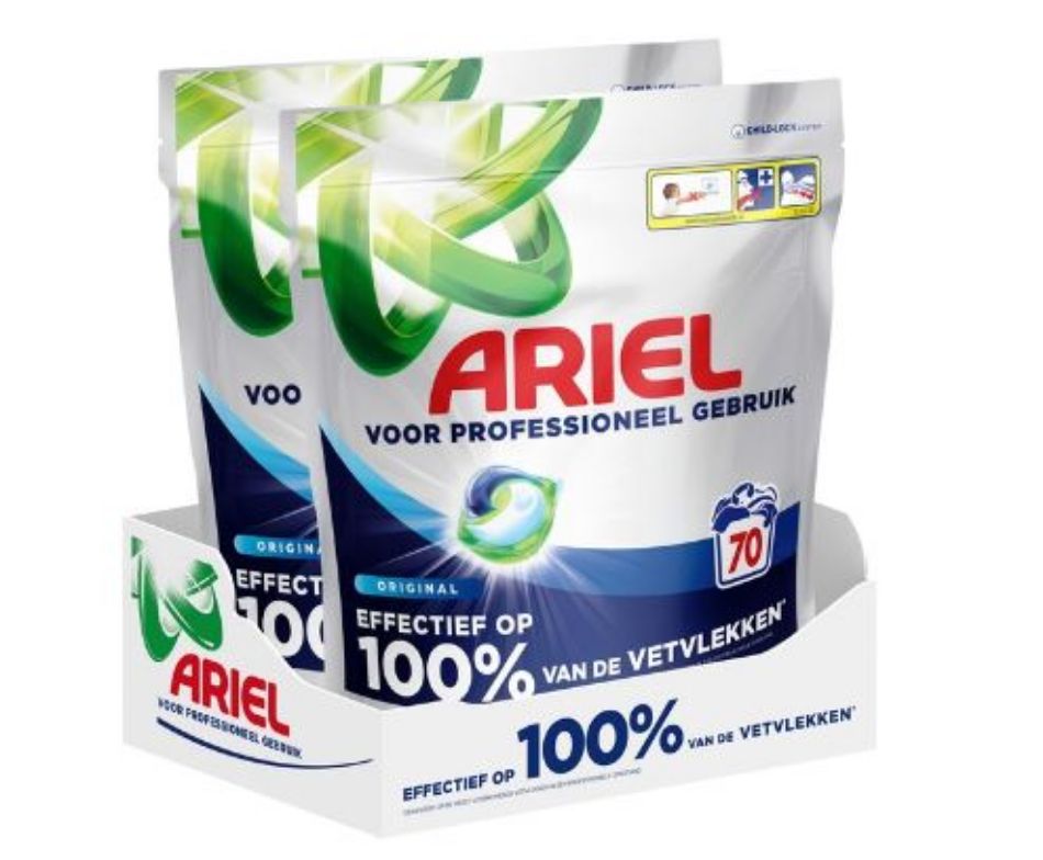 Ariel professional wascapsules regular is een supergeconcentreerd wasmiddel met meerdere compartimenten.Het wasmiddel wast grondig schoon, verwijdert vlekken en laat uw gekleurde kleding er langer als nieuw uitzien.Elke Ariel capsule is voorgedoseerd, dus geen geknoei meer.Gebruik 1 capsule per keer (in zacht tot gemiddeld water en voor licht tot gemiddeld vuile was).Het vernieuwende omhulsel lost compleet op wanneer het in contact komt met water en laat de krachtige technologie vrij om vlekken grondig te verwijderen.Dit geeft u het beste vloeibare wasmiddel van Ariel, met precies de juiste hoeveelheid wasmiddel.Universeel wasmiddel.Gevarenaanduiding:H315 Veroorzaakt huidirritatie.H318 Veroorzaakt ernstig oogletsel.H412 Schadelijk voor in het water levende organismen, met langdurige gevolgen.P102 Buiten het bereik van kinderen houden.P305+P351 Bij contact met de ogen voorzichtig afspoelen met water gedurende een aantal minuten. P301+P330+P331 na inslikken de mond spoelen, Geen braken opwekken.P310 onmiddellijk een antigifcentrum of een arts raadplegen. P302+P352 bij contact met de huid met veel water wassen. P501 inhoud/verpakking afvoeren volgens de plaatselijke regelgeving.EUH208 Bevat Methyl 2-[[[4-(4-hydroxy-4-methylpentyl)-3-cyclohexenyl]methylene]amino]Benzoate, Tetramethyl Acetyloctahydronaphthalenes. Kan een allergische reactie veroorzaken.