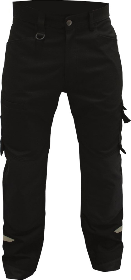 Type Thijs. Cordura® versterkingen en drievoudig gestikte naden voor maximale sterkte. De broekspijp is met 50 mm te verlengen door de zoom los te halen. Voorzien van twee steekzakken, twee achterzakken met klep, dijbeenzak met klep, telefoonzak, en potloodzak, dijbeenzak met dubbele duimstokzak en extra knoop om mes aan te hangen, extra steekzak op rechterbovenbeen, hamerlus en reflectiestrepen. Verstelbare taille met elastiek. Gewicht van de stof 300 g/m².