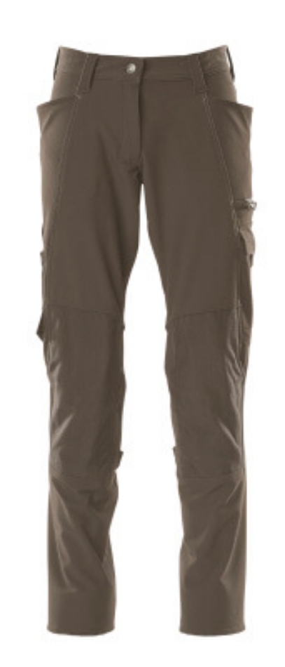 Vrouwelijke pasvorm PEARL. Met een waterafstotende finish. Lichte, slijtvaste strechstof, in 4 richtingen rekbaar. Door de geïntegreerde zakken is het materiaal bijna niet merkbaar op de huid. Tweevoudig gestikte naden aan de broekspijpen en in het kruis. Lage taille. Ergonomisch gevormde broekspijpen. Riemlussen. Sluiting met rits. Voorzakken. Achterzakken. Dijbeenzak met telefoonzakje en klep met verborgen drukknoop en geïntegreerde ID-kaarthouder. Afneembare ID-kaarthouder. Duimstokzak van CORDURA met extra zakken. Slijtvaste ventilerende kniezakken van CORDURA (500 D). De hoogte van de kniezak is gemakkelijk en individueel aan te passen. We raden de Mascot Waterloo kniestukken aan voor dit model. Met opdruk en reflectoren.