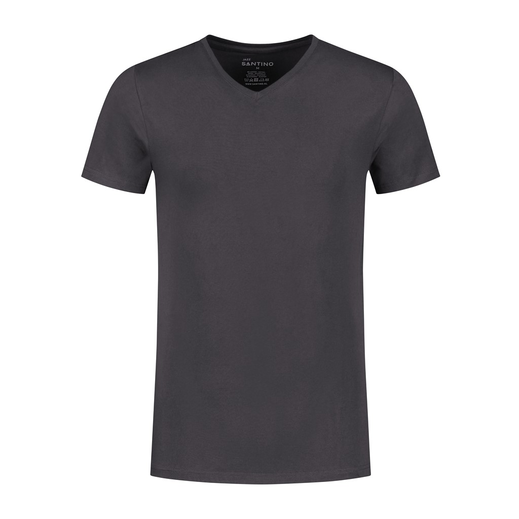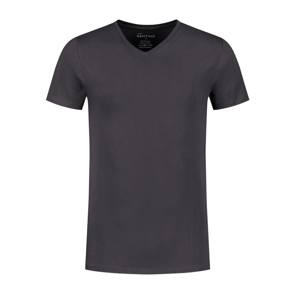 T-shirt, 95% katoen / 5% elastaan, 180 gr/m², single jersey, modern fit met V-hals en ribkraag.