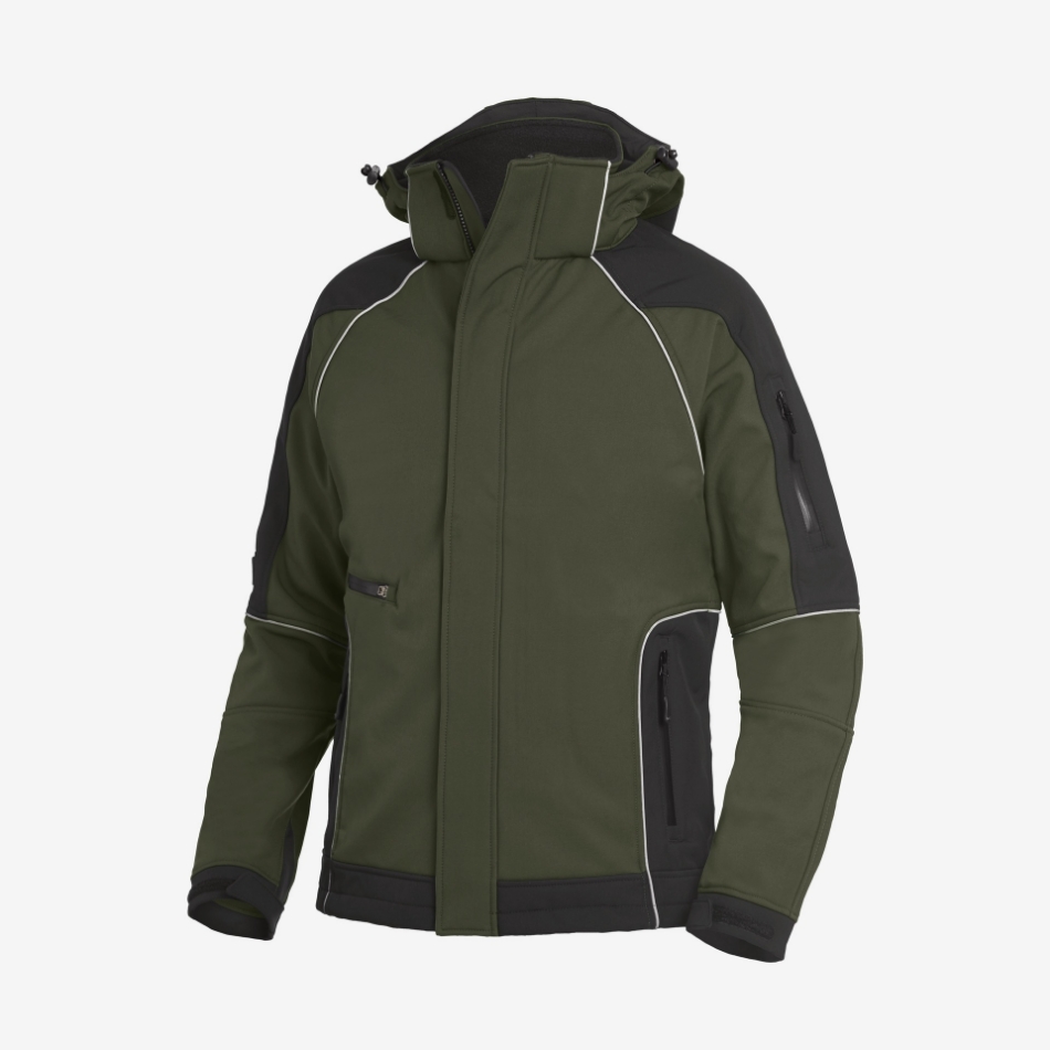 FHB WALTER Softshelljack, FHB-membraan, optimale bewegingsvrijheid door elastisch bovenmateriaal, ademend, winddicht en waterafstotend (10.000mm waterkolom), waterdichte ritsen, reflecterende paspels, 2 zijzakken + gsm-vak, 1 binnenzak, afneembare capuchon