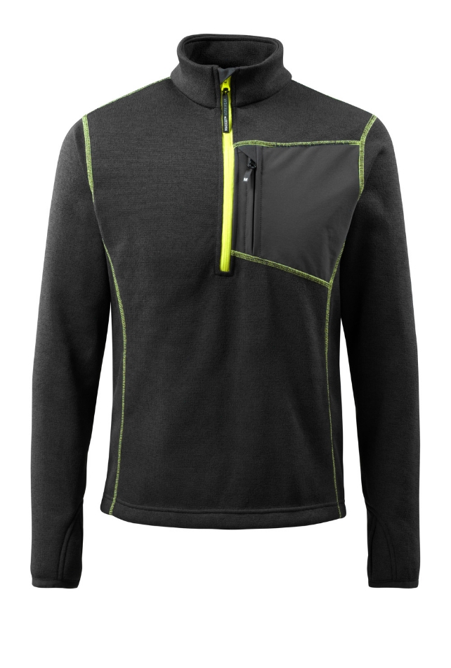 Rits bij de hals met windvanger. Borstzak met loodrechte rits is gemakkelijk toegankelijk, geschikt voor telefoon. Elastiek bij de pols. Openingen voor de duim in de mouwen. 100% polyester, 300 g/m