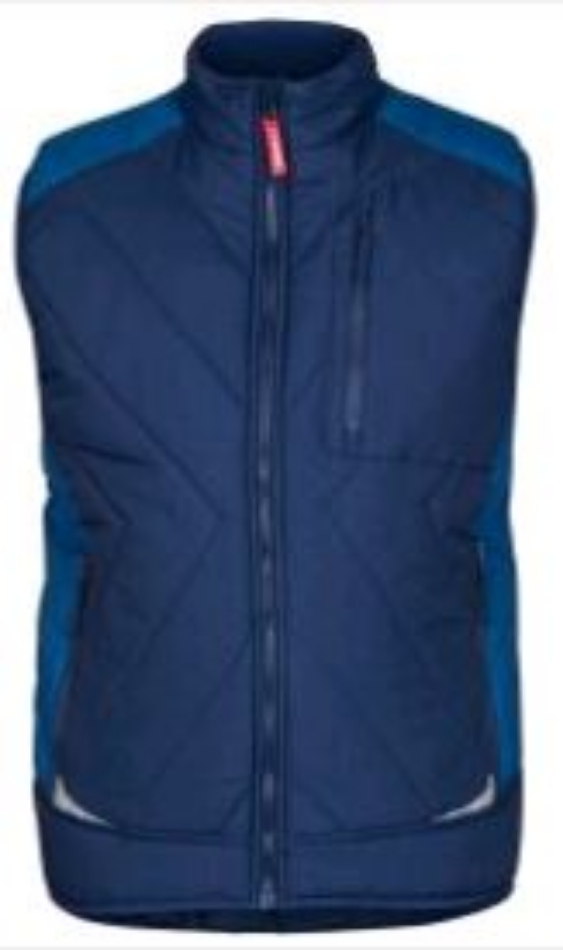 Hoge kraag en verlengd rugpand, ritssluiting aan de voorzijde, veel functionele zakken – alle met ritssluiting, het vest heeft elastiek in de taille en in de armsgaten.