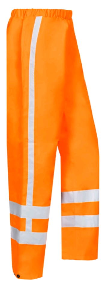 Waterdicht, winddicht en ademend. Deze lichte comfortabele signalisatiebroek is voorzien van een vochtabsorberende coating aan de binnenkant, een elastische taille, vernauwing aan de beenuiteinden en reflecterende strepen.