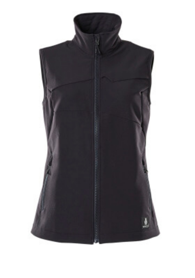 Vrouwelijke pasvorm. Met een waterafstotende finish. Lichte, slijtvaste strechstof, in 4 richtingen rekbaar. Sluiting met rits en inwendige windvanger. Voorzakken met rits. Tailleband met drukknoopregulering. Met opdruk en reflectoren.