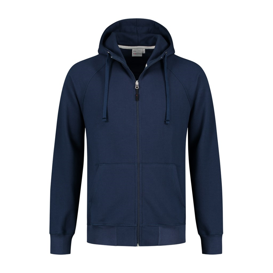 Sweatvest met capuchon met raglan mouw inzet, 320 gr/m², french terry met geruwde binnenzijde, modern fit met opstaande kraag, platgeweven koord in capuchon, mouw met ribmanchet, tailleband in 1x1 rib, halve maan en YKK rits.