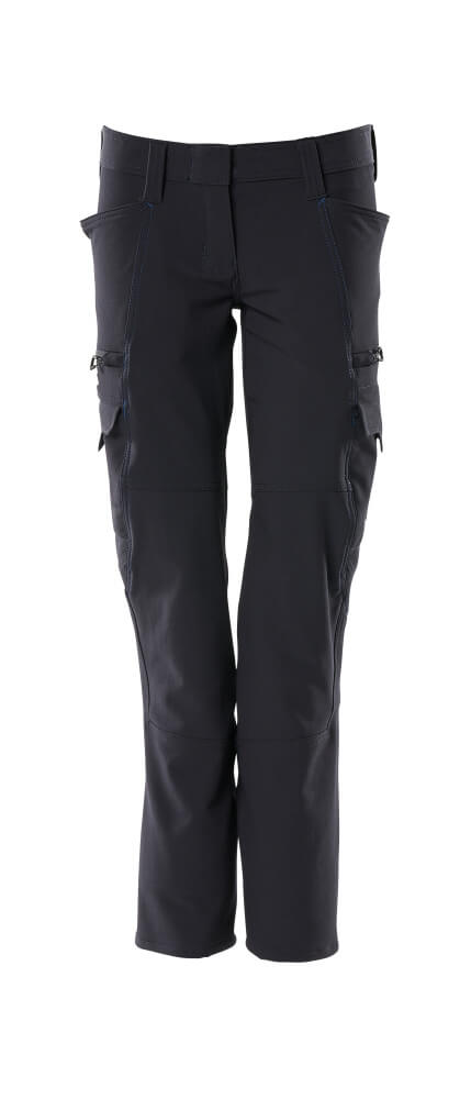 Vrouwelijke pasvorm PEARL. Met een waterafstotende finish. 4-weg Stretchstof met laag gewicht en goede slijtvastheid. Door de geïntegreerde zakken is het materiaal bijna niet merkbaar op de huid. Tweevoudig gestikte naden aan de broekspijpen en in het kruis. Lage taille. Ergonomisch gevormde broekspijpen. Riemlussen. Sluiting met rits. Voorzakken. Achterzakken. Dijbeenzak met telefoonzak en klep met verborgen drukknoop en geïntegreerde ID-kaarthouder. Afneembare ID-kaarthouder. Dijbeenzak met duimstokzak. Met opdruk en reflectoren.