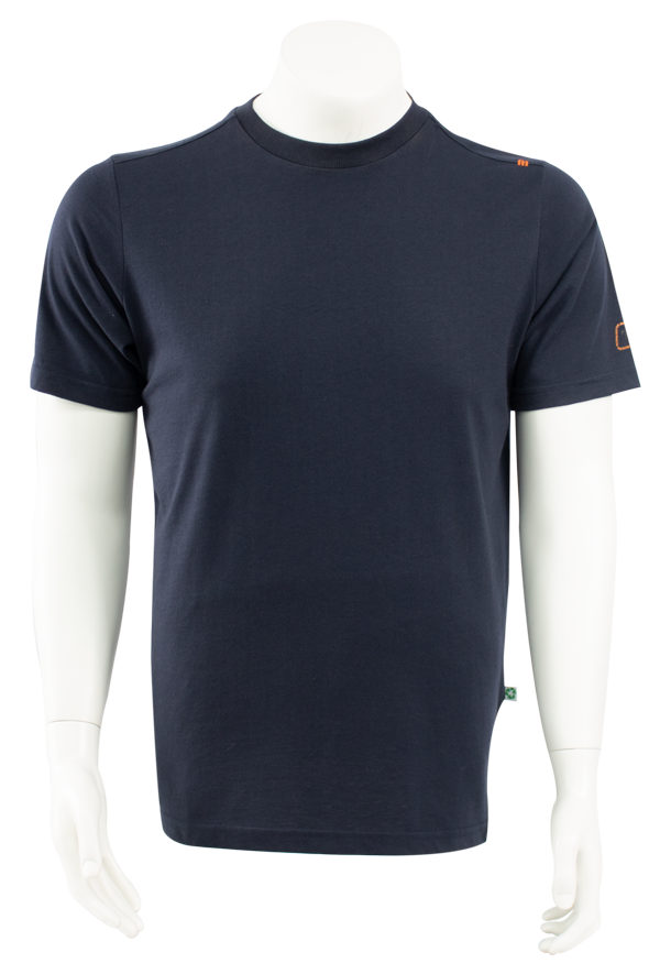 Ronde hals, korte mouw, gewicht: 160 gr./m2. Gemaakt vaan 50% recycled textiel, 50% recycled PET-polyester.