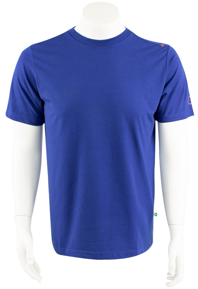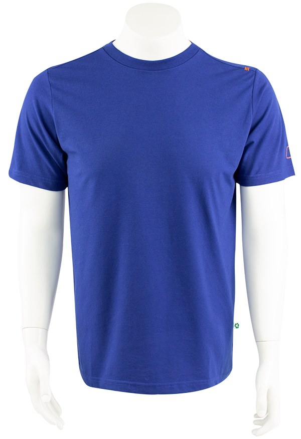 Ronde hals, korte mouw, gewicht: 160 gr./m2. Gemaakt vaan 50% recycled textiel, 50% recycled PET-polyester.