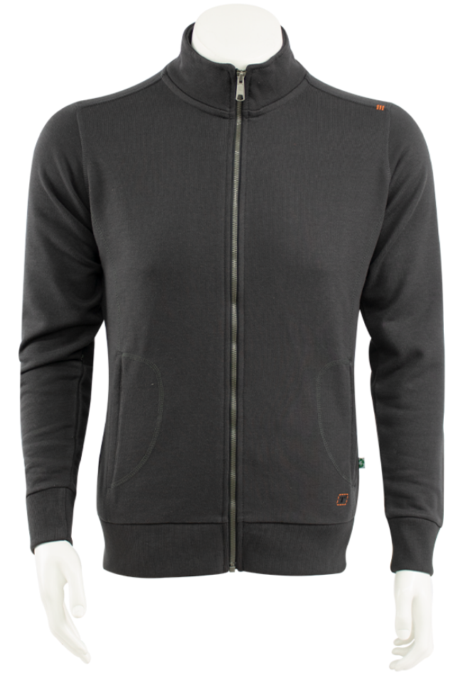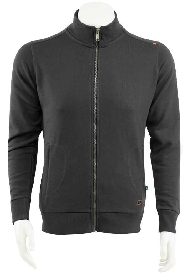 Steekzakken met ritsen, fancy overlock stiksels over de naden, sluiting met metalen rits, rib manchetten en boord, rib aan de binnenkant van de kraag, gewicht: 340 gr./m2. Gemaakt vaan 50% recycled textiel, 50% recycled PET-polyester.