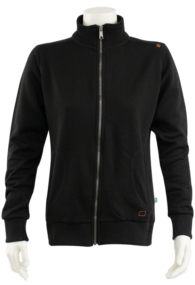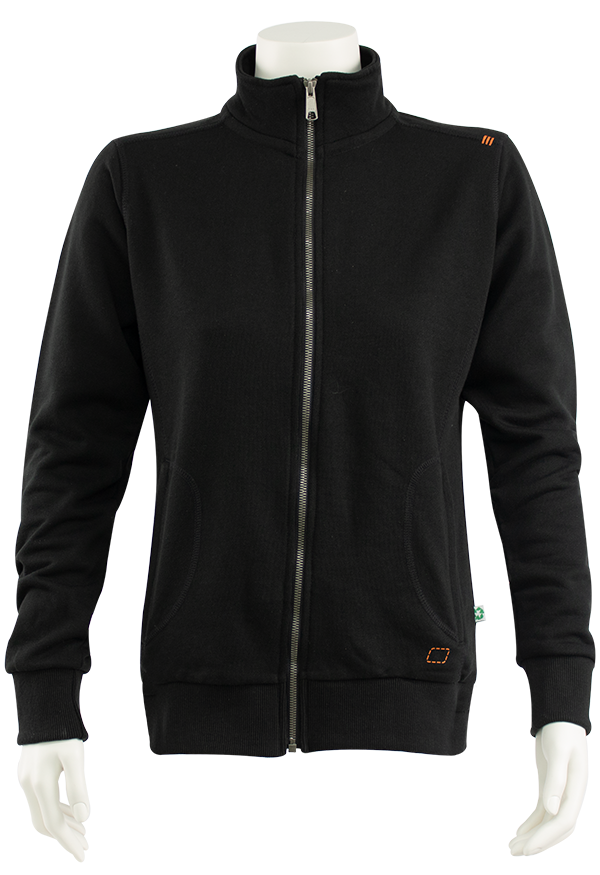 Getailleerd, steekzakken met ritsen, fancy overlock stiksels over de naden, sluiting met metalen rits, rib manchetten en boord, gewicht: 340 gr./m.