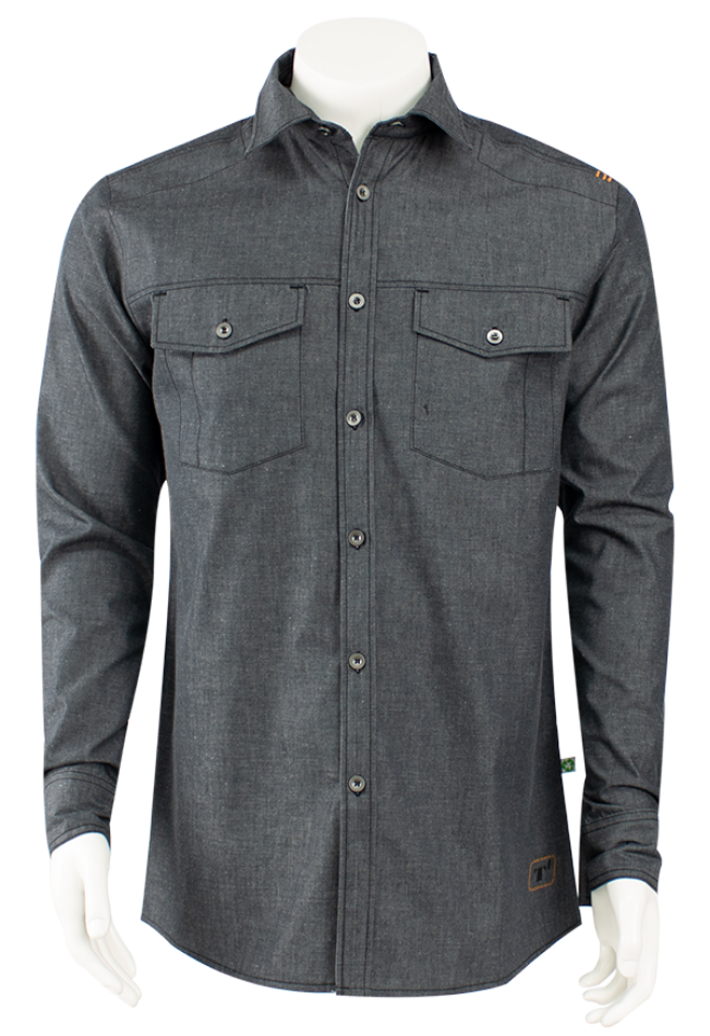 2 borstzakken met klep, verstelbare manchetten d.m.v. drukknopen, verstevigde schouderstukken, oprolsysteem in mouwen, gewicht: 170 gr./m2.