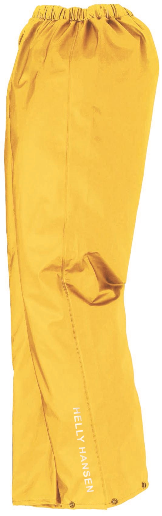Elastische taille, drukknoopverstelling in boord, materiaal en afwerking waterdicht.