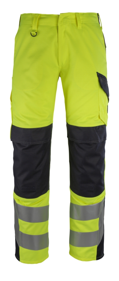 Tweekleurig. Fluorescerend, met reflecties. Antistatisch, zuurbestendig en vlamvertragend. Vuilafstotend. Beschermt tegen vlambogen en incidenteel lassen. Tweevoudig en drievoudig gestikte naden aan de broekspijpen en in het kruis. Riemlussen. Lage taille en voorgevormde tailleband. D-ring. Gulp met rits. Ergonomisch gevormde broekspijpen. Voorzakken. Achterzakken met versterking, klep en verborgen drukknopen. Dijbeenzak met klep en verborgen drukknopen. Telefoonzak op de dijbeen. Versterkte duimstokzak. Verstelbare kniezakken met klep en opening aan de bovenzijde.
