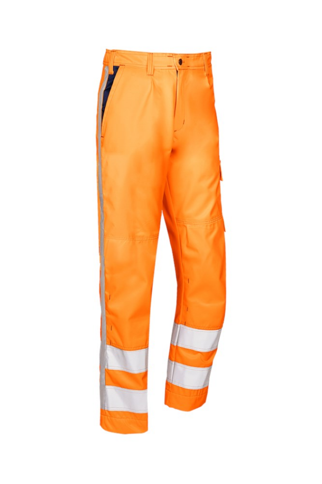 Comfortabele signalisatiebroek met reflecterende banden aan de zijkant en onderaan de broek. De Meddo, met gulp met rits en knoopsluiting, heeft twee diagonaal ingezette zakken, een achterzak met flap, een zak met flap op het dijbeen en een stokmeterzak. Voor uw gemak werd de broek voorzien van een elastische taille met riemlussen en kniezakken.