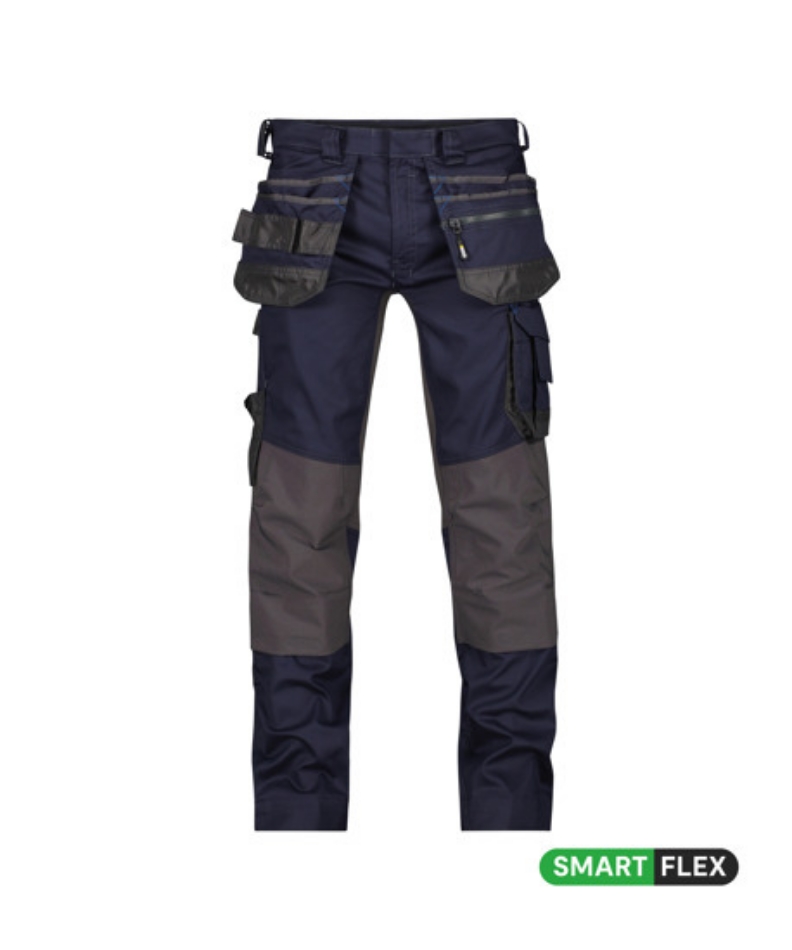De DASSY® D-FX Flex Flux is uitstekend geschikt voor het zwaardere werk, dankzij de duurzame stof en de Cordura® versterkingen. Tegelijk biedt het gestroomlijnde ontwerp ruim voldoende bewegingsvrijheid. De hoofdstof van mechanische stretch wordt vakkundig gecombineerd met inzetstukken van 4-way stretch Cordura®, net op die plaatsen waar je het nodig hebt. En dankzij de ruime en praktisch gecompartimenteerde holsterzakken heb je al je gereedschap vlot bij de hand.