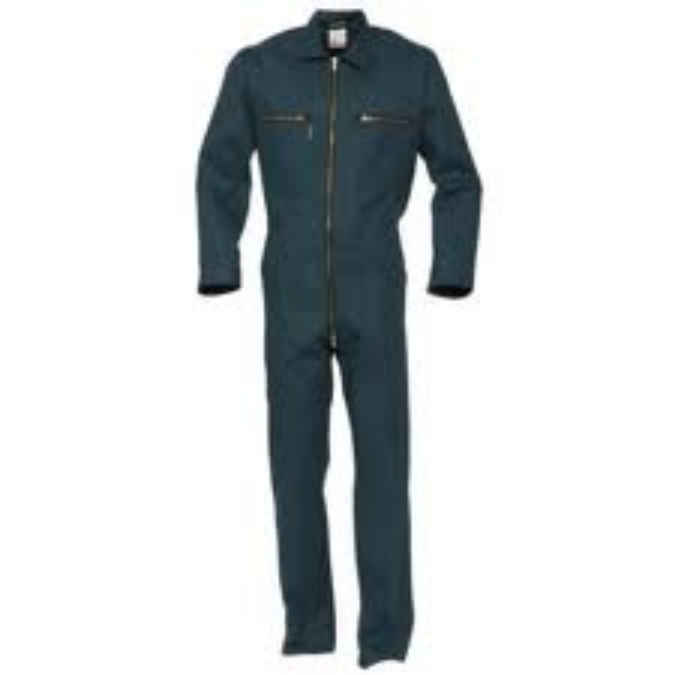 2-weg ritssluiting, 2 zijzakken, 2 intasten, 2 borstzakken met rits, achterzak, duimstokzak, elastiek in rug, rugplooien, mouwen met steldrukkers, pijpen met steldrukkers.