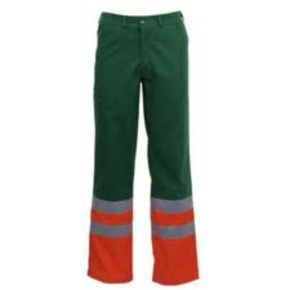 Verdekte ritssluiting, 2 ingezette zijzakken, 2 achterzakken waarvan 1 met knoop, duimstokzak, dijbeenzak met klep, kniezakken, elastiek in rug.
