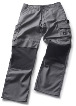 Tweevoudig en drievoudig gestikte naden aan de broekspijpen en in het kruis. Lage taille en voorgevormde tailleband. Ergonomisch gevormde broekspijpen. Riemlussen. Gulp met rits. Voorzakken. Achterzakken met versterking en kleppen met klittenbandsluiting. Verstelbare hamerlus. Dijbeenzak met versterking, telefoonzak en klep met klittenbandsluiting. Versterkte duimstokzak met klein zakje aan de buitenzijde. Pennenzakje. Kniezakken van Kevlar met klep en opening aan de bovenzijde. Contraststiksels. Reflectie-effecten.