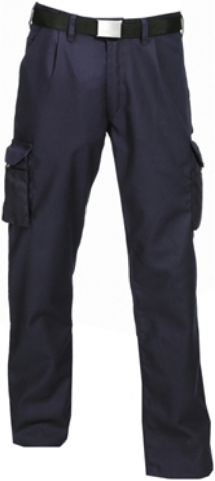 Drievoudig gestikte naden aan de broekspijpen en in het kruis. Riemlussen. Gulp met rits. Voorzakken. Muntzakje. Achterzakken met versterking en kleppen met klittenbandsluiting. Verstelbare hamerlus. Dijbeenzak met cordura versterkt en klep met klittenbandsluiting. Telefoonzak op de dijbeen met klep en verstelbare klittenbandsluiting. Pennenzakje van cordura. Duimstokzak van cordura. Reflectie-effecten.