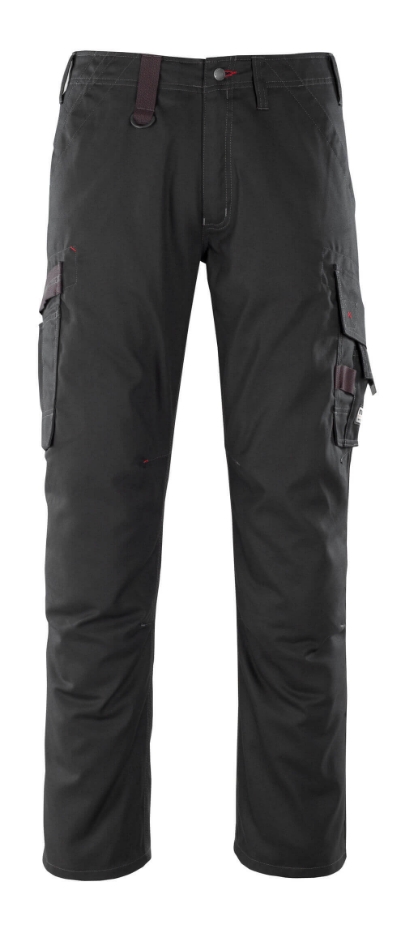 Tweevoudig en drievoudig gestikte naden aan de broekspijpen en in het kruis. Lage taille en voorgevormde tailleband. Ergonomisch gevormde broekspijpen. Riemlussen. Gulp met rits. Voorzakken. D-ring. Achterzakken, één met klep en klittenbandsluiting en één met verborgen rits. Dijbeenzakken, één met klep en klittenbandsluiting en één met verborgen rits. Telefoonzak op de dijbeen met klep en verstelbare klittenbandsluiting. Rode contrasten op bepaalde delen van het product. Reflectie-effecten.