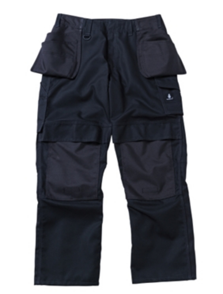 Lichtgewicht materiaal. Drievoudig gestikte naden aan de broekspijpen en in het kruis. Lage taille en voorgevormde tailleband. Ergonomisch gevormde broekspijpen. Riemlussen. D-ring. Gulp met rits. Spijkerzakken van polyester met versterking en extra zakken. Voorzakken. Achterzakken met versterking. Verstelbare hamerlus. Dijbeenzak met klep en verborgen drukknopen. Versterkte duimstokzak. Pennenzakjes. Verstelbare kniezakken van polyester met klep en opening aan de bovenzijde. Contraststiksels. Reflectie-effecten.