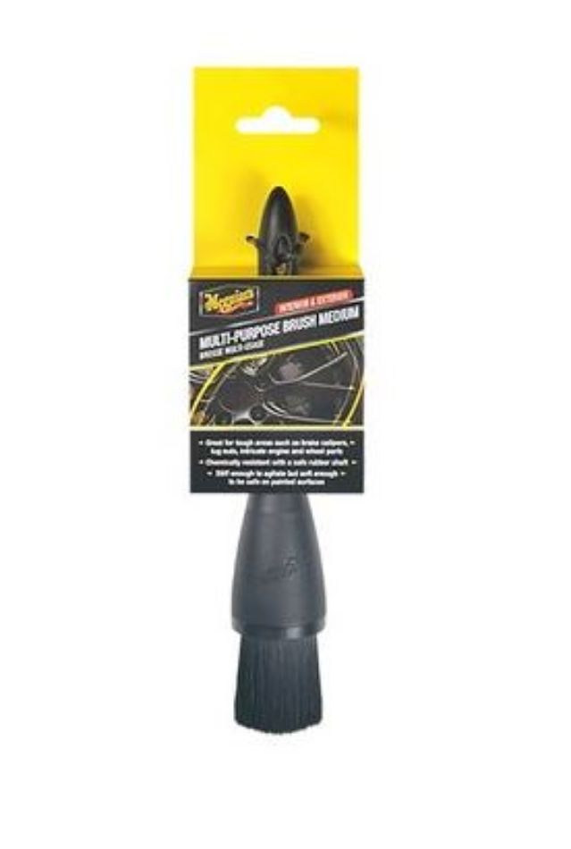 De Meguiar’s Multi Purpose Brush medium heeft een afmeting van 20cm x 3 cm en is chemisch bestendig met een veilige rubberen hals zodat lak niet beschadigd wordt tijdens gebruik. De zachte haren zijn stug genoeg om een oppervlak te bewerken maar zacht genoeg om veilig te zijn op lakoppervlak. De Multi Purpose Brush is geschikt voor interieur en exterieur en is ook verkrijgbaar in maat Large (24cm x 4cm).