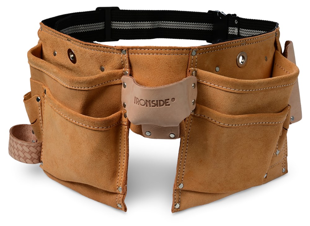 Deze professionele lederen Ironside gereedschapsgordel heeft 11 vakken waaronder een nagelzak en is voorzien van een nylon gordel.