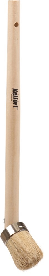 Gevulkaniseerde ronde kwast met houten steel en wit varkenshaar aan de steel geschroefd. Voor verf op waterbasis.