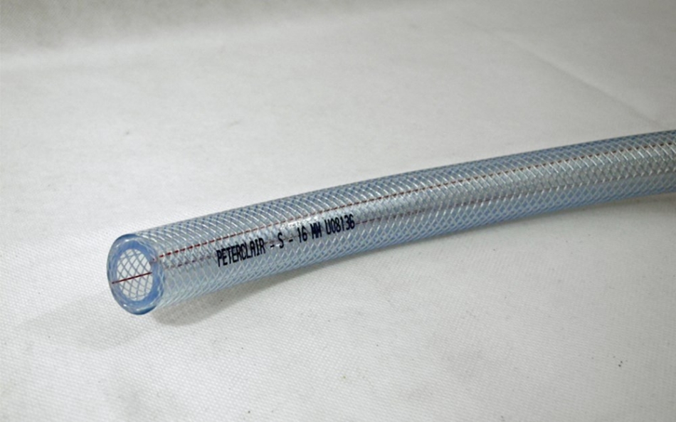 Transparante 3 lagen PVC slang met polyester inlagen.
