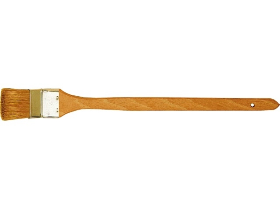 Alkyd, wit chinees varkenshaar, ongelakte houten steel, nikkelen bus.