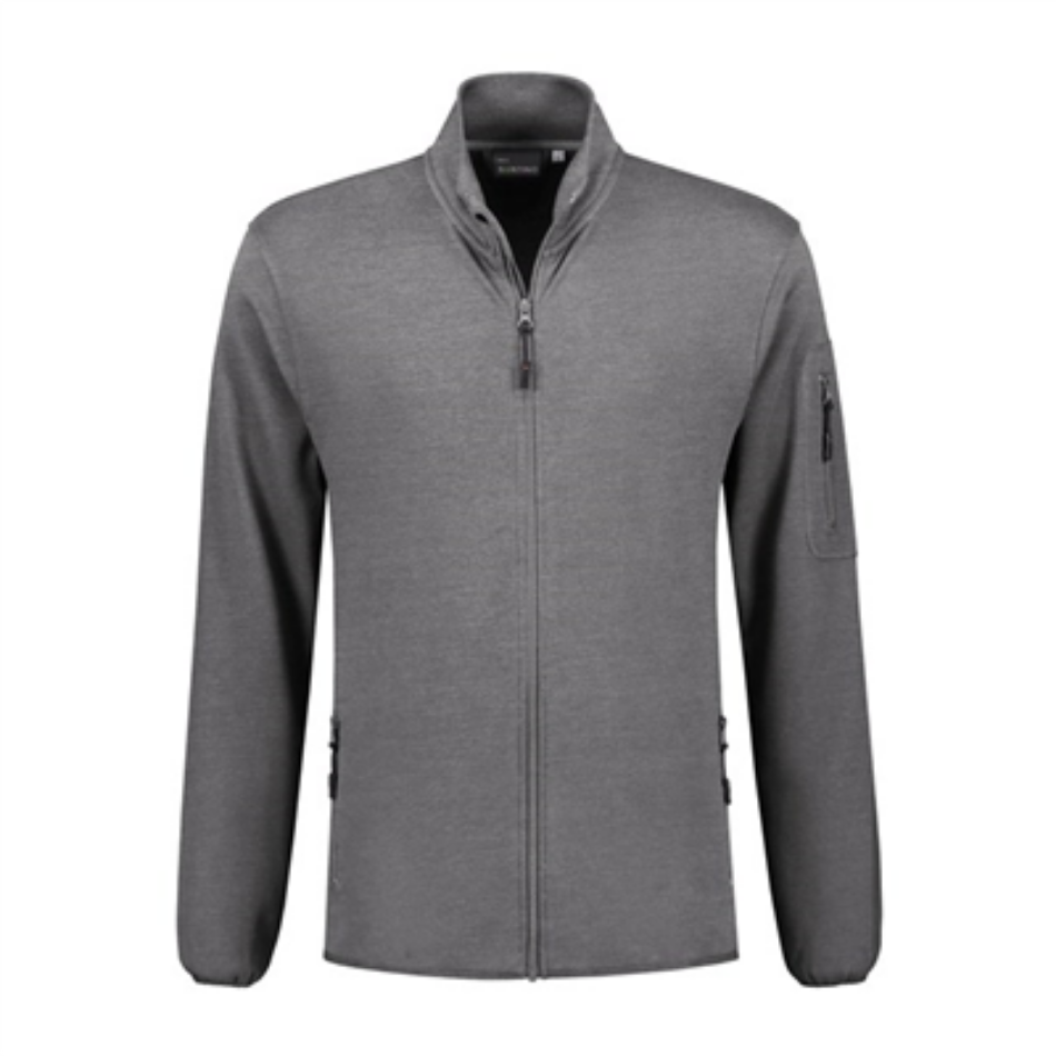 Sweatvest, 80% organisch katoen (GOTS) / 20% rPET polyester, 280 gr/m², Interlock, modern fit met opstaande kraag, mouw met elastieke binding, 2 steekzakken en mouwzak allen met YKK ritsen.